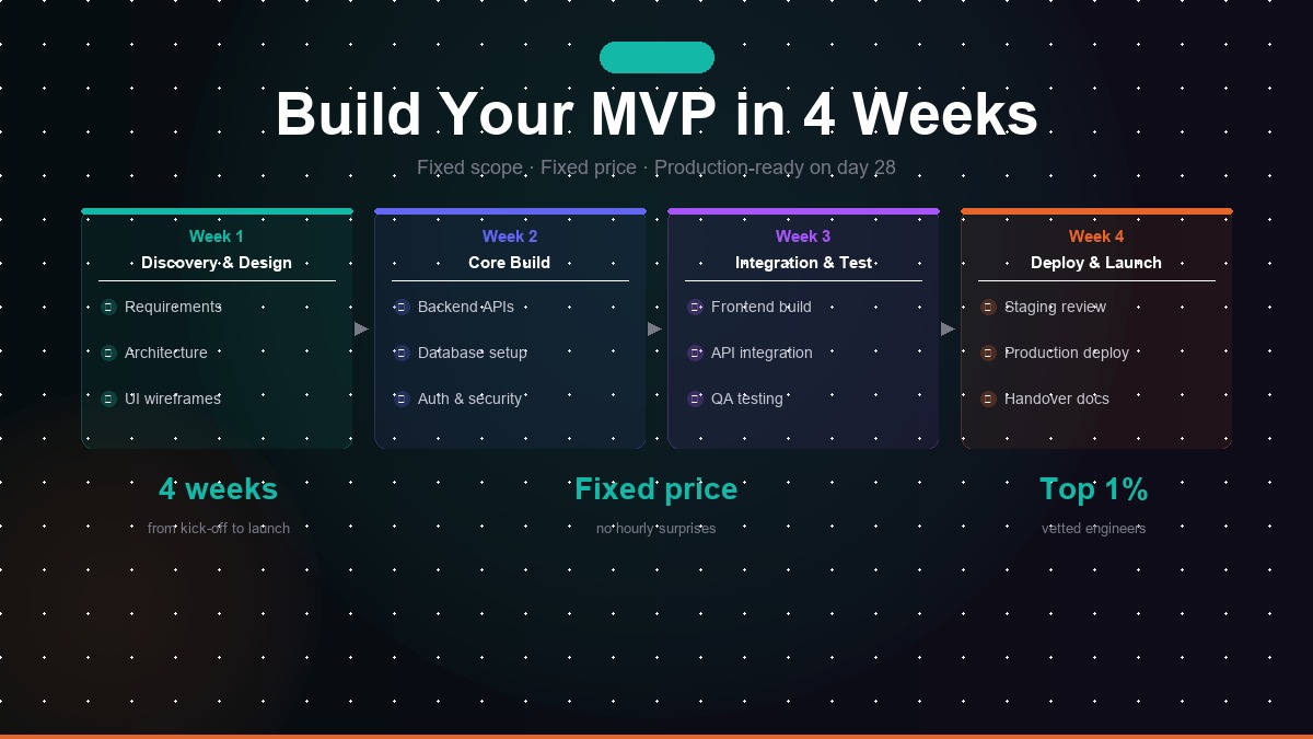 Speed and quality aren't mutually exclusive. Here's the exact week-by-week framework Kovil uses to ship production-ready MVPs in under 30 days, without cutting corners.